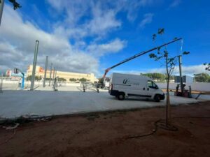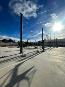 Comienza la instalación de la cubierta de las pistas deportivas del CEIP Nº2, de 48 x 28 metros.